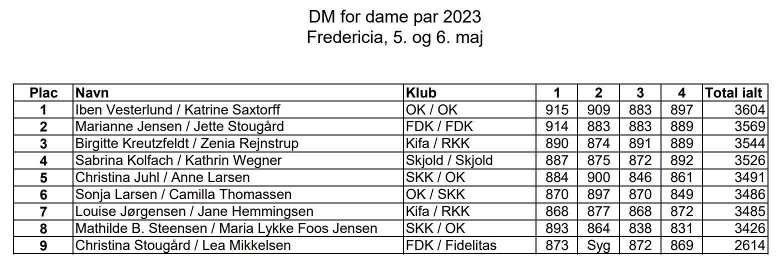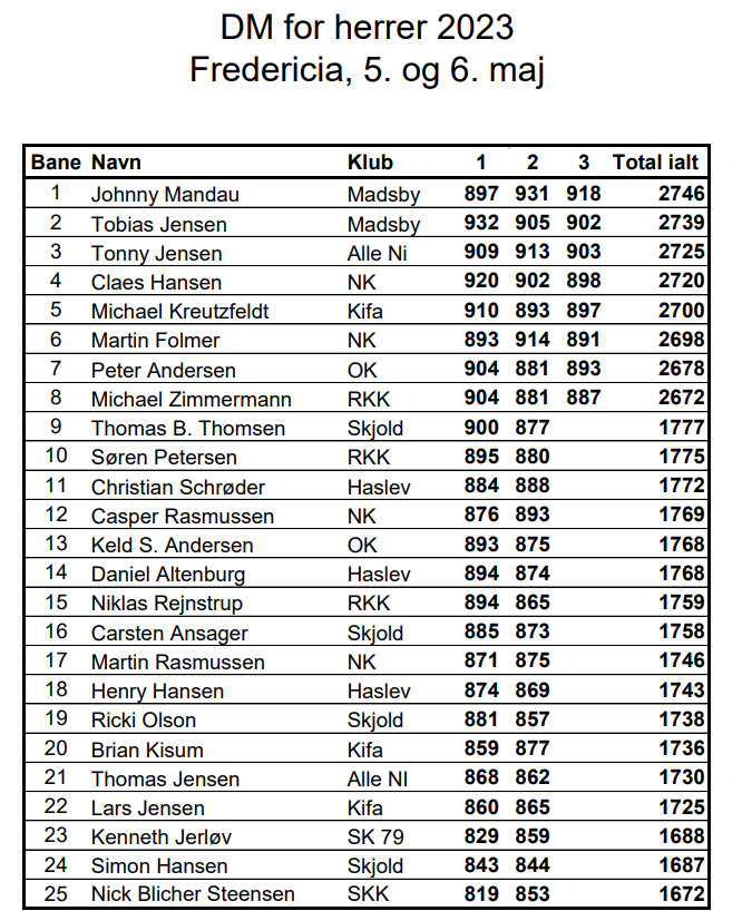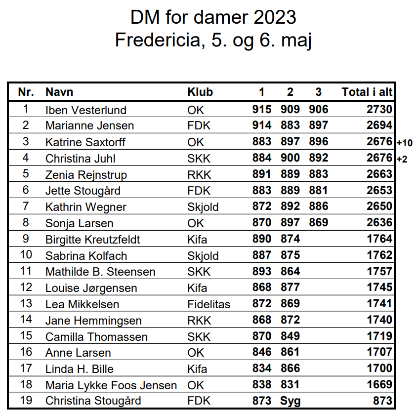 Hermed resultater de danske mesterskaber i mesterrækken.